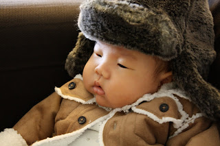 Anyway, my mom said that she wants Ben to always have a hat on when he leaves the house to complete his outfits. Hope these photos temporarily satisfy her desire. We'll see what happens when we start taking him out more often.